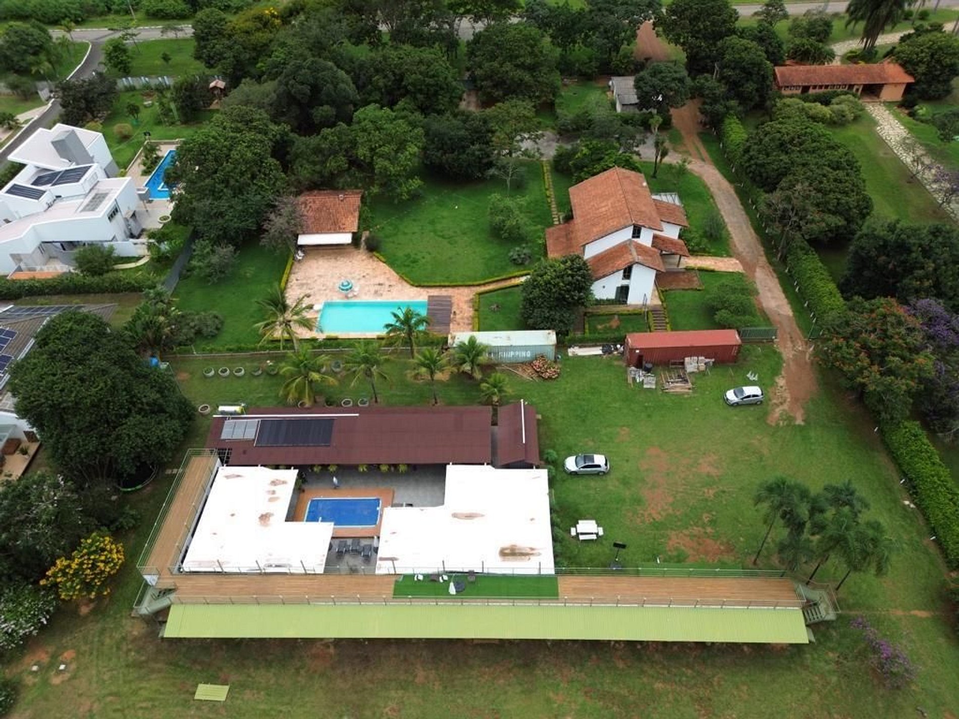 The accommodation consists of 10 containers with four suites and two large bedrooms, two external bathrooms, large kitchen and external laundry, with six bathrooms and accommodates up to 34 people in a king bed, 6 double beds, 6 single beds and 7 sleeper sofas.