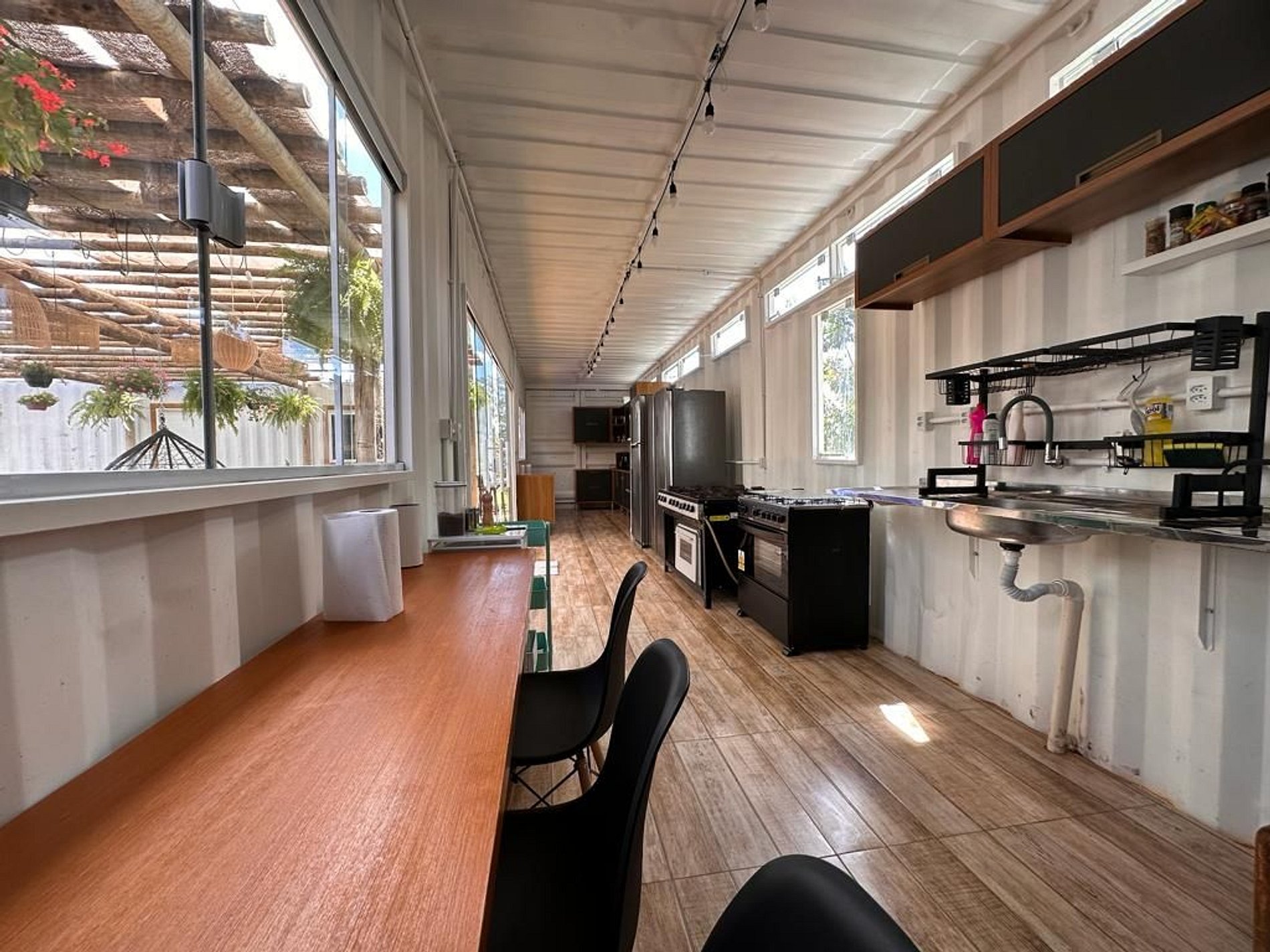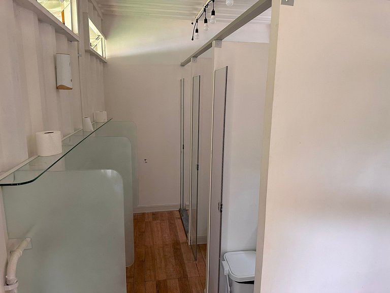 The accommodation consists of 10 containers with four suites and two large bedrooms, two external bathrooms, large kitchen and external laundry, with six bathrooms and accommodates up to 34 people in a king bed, 6 double beds, 6 single beds and 7 sleeper sofas.