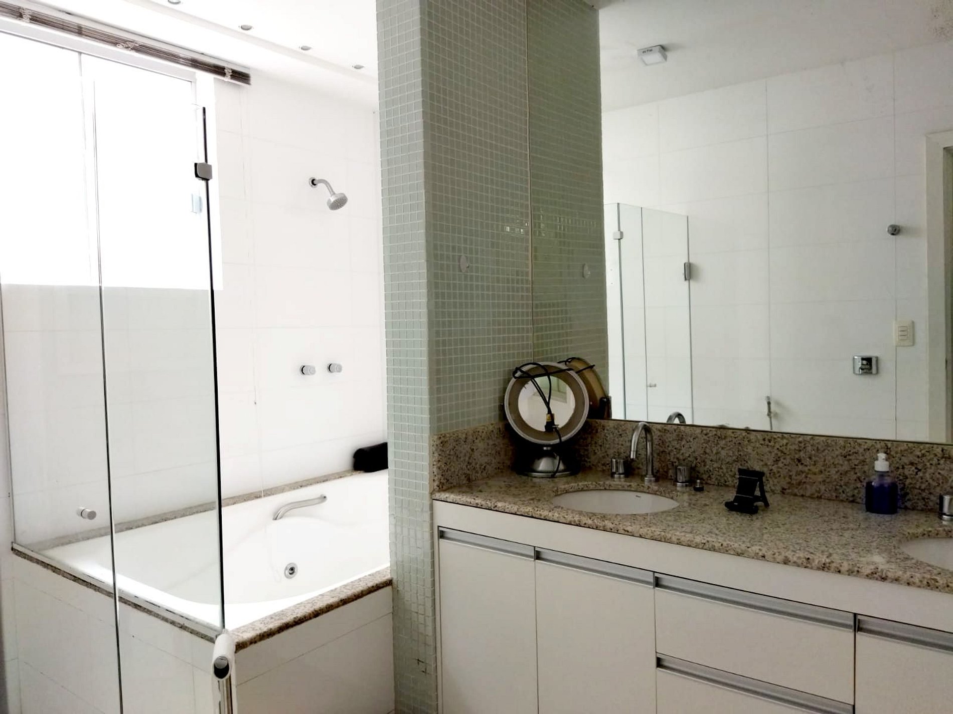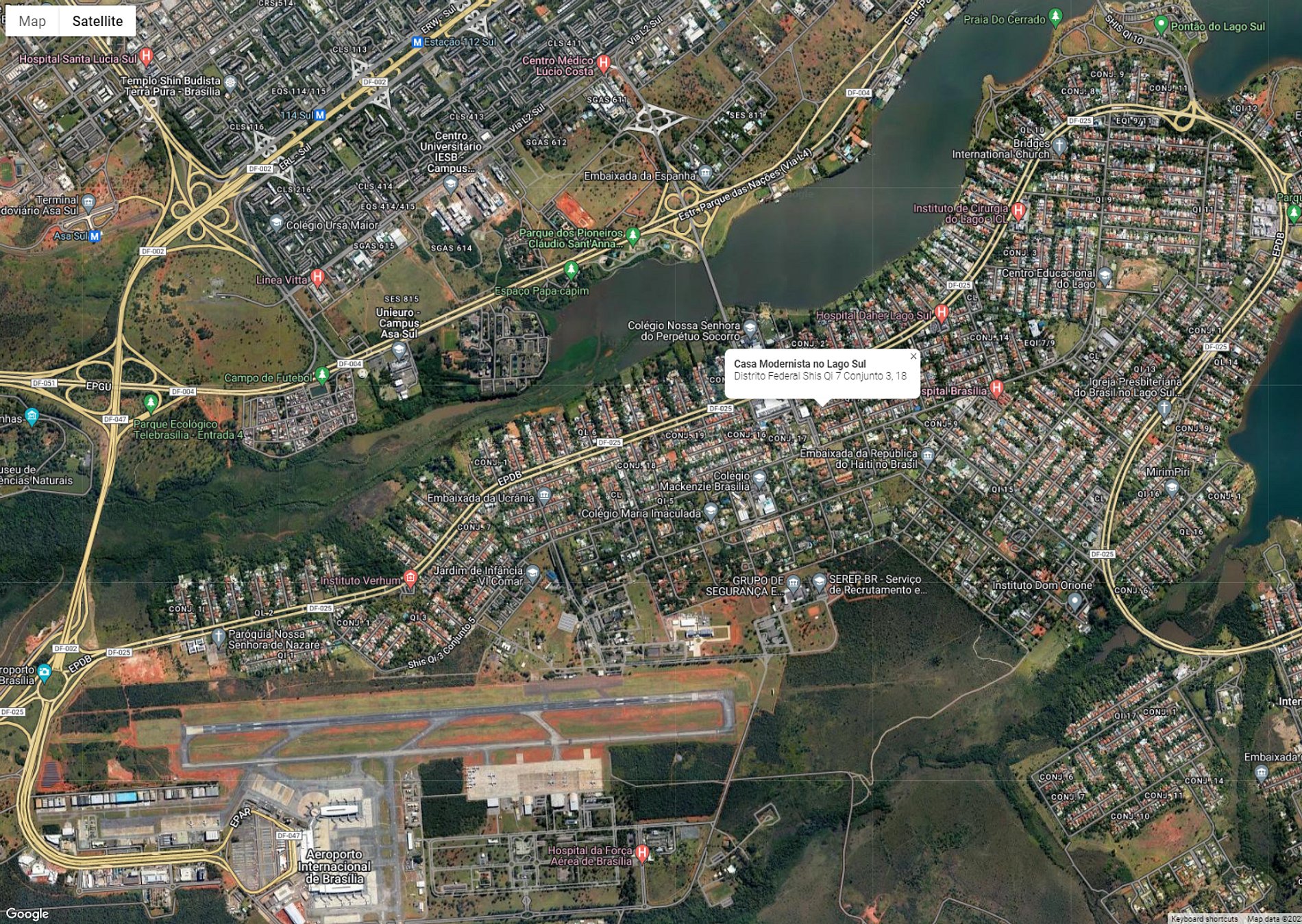 Room rental at Casa Modernista. The master suite accommodates up to 4 people, has air conditioning, smart TV, wifi. The house has 400 m2, 5 suites, and a shared space with a heated pool, SPA for 8 people, gas and charcoal barbecue, 300 mega wifi, hammock, outdoor fireplace, covered lounge, playground and bounce house for the children. It is next to the Gilberto Salomão shopping mall (500m), close to Ponte das Garças (1 km), Pontão do Lago Sul (6 km) and Brasília JK Airport (8 km).