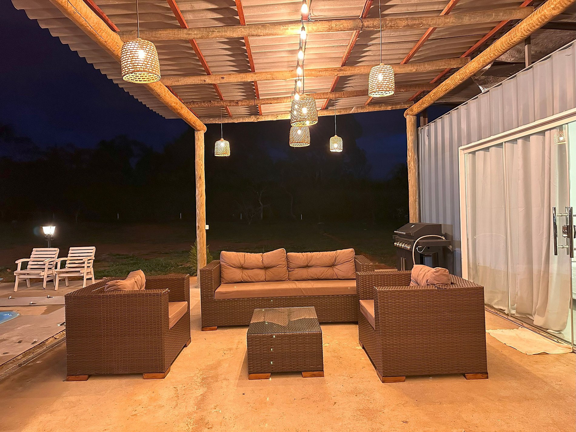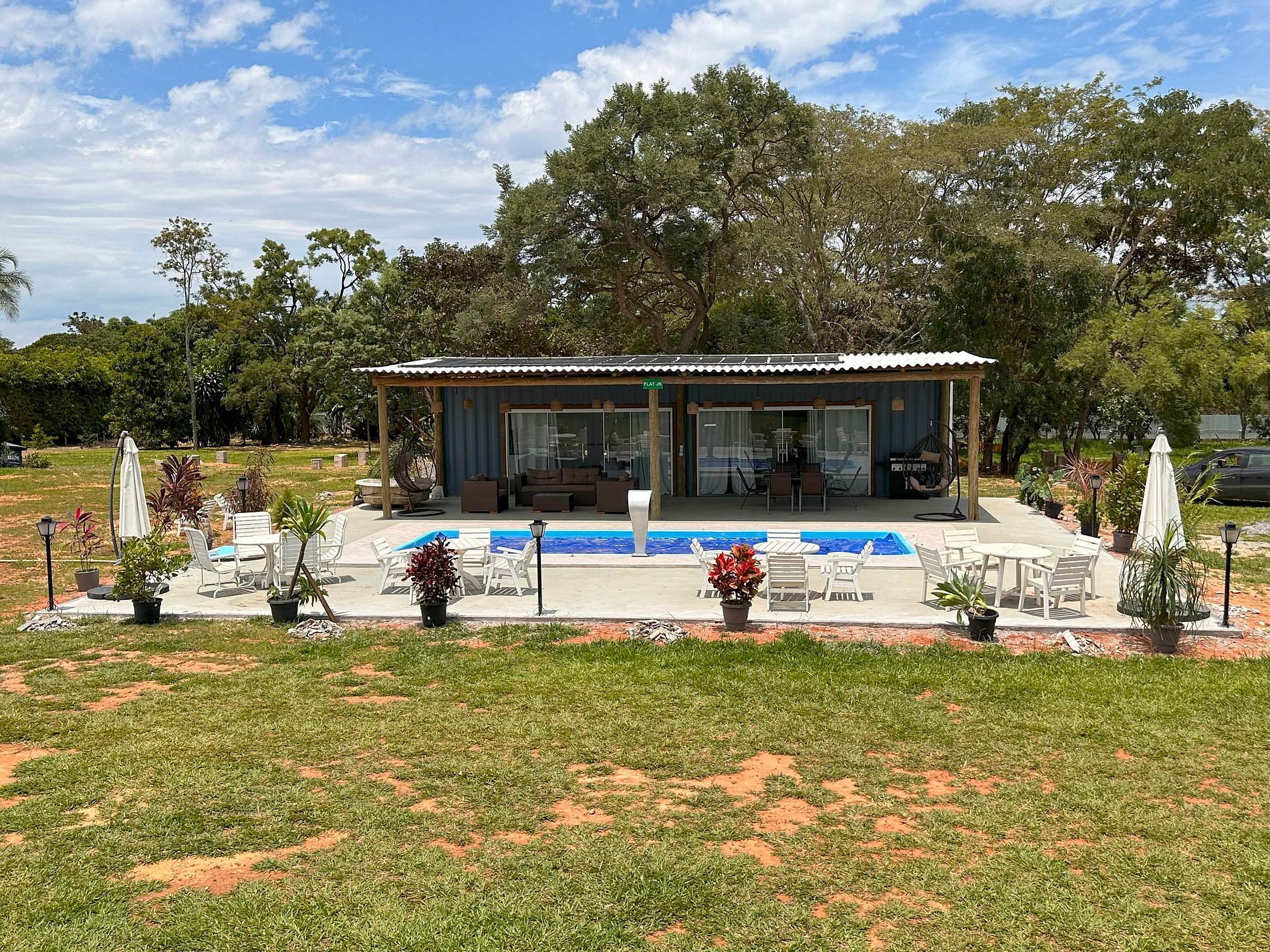 A Casa Villela que compõe a Villa Catetinho tem duas suítes de 30 m² que acomodam até 7 pessoas e uma sala com 3 sofás-cama.