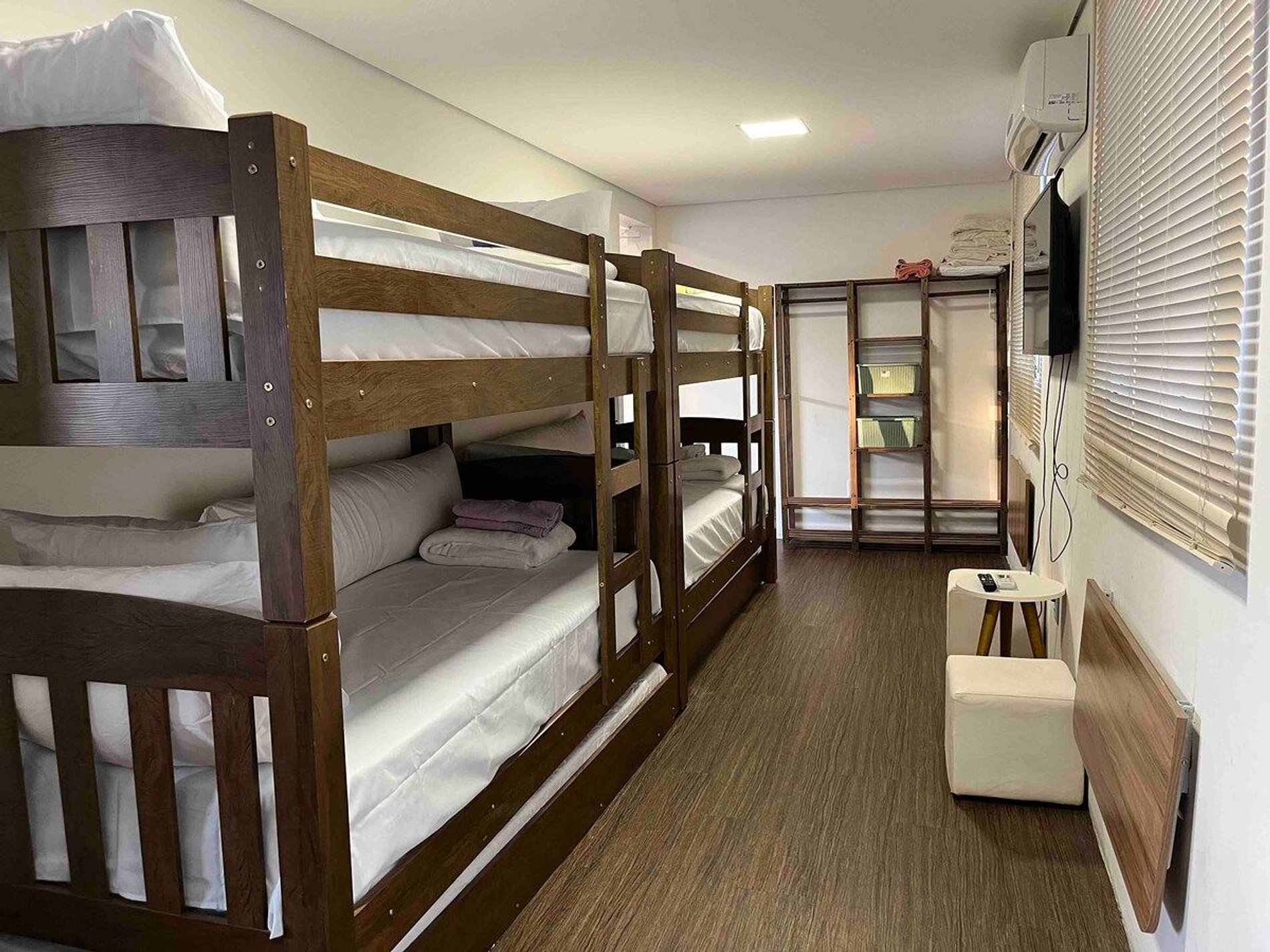 Apartamento privado con dos suites, dos baños y una sala de estar, con 1 cama king, 6 camas individuales y 2 sofás cama para hasta 12 personas, ubicado en Villela Home Stay, que se encuentra en SMDB do Lago Sul, con un ocio Zona compartida con piscina, barbacoa, SPA, cocina completa. Cerca del puente JK, cerca de buenos restaurantes, 3 centros comerciales, Atacadão Dia a Dia, Big Box y Carrefour, farmacias, lavandería, panadería y banco las 24 horas A 11 km del centro de la ciudad.