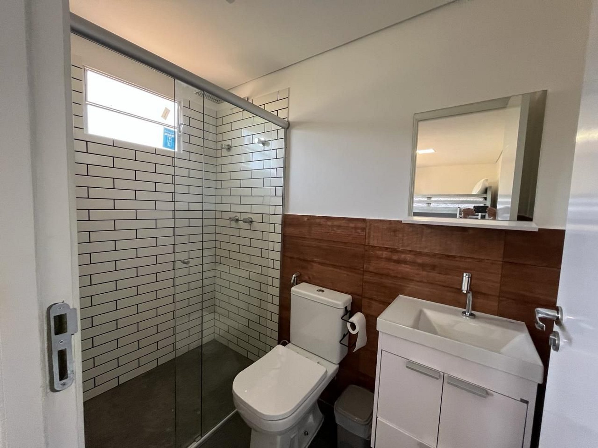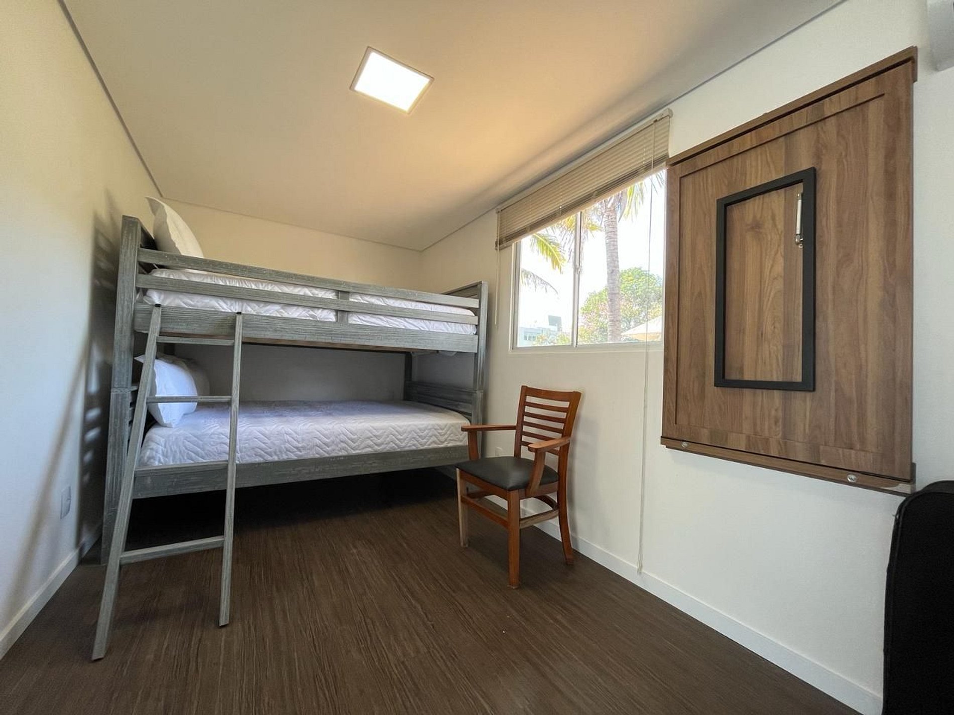 A Suíte do Chef tem um banheiro, beliche com duas camas de casal, tv smart e aquecedor e